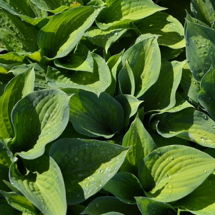 1999 Hosta of the Year; Leaves are blue-green with a chartreuse center in spring turning darker green in summer with centers of brighter gold.