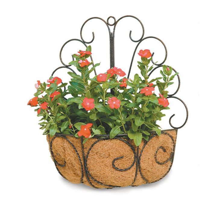 Deer Park Ironworks® Peacock Wall Basket Natural Patina - 18in L x 18in W x 19in H (Basket size 15 x 8 x 8) - Includes coco liner. Replacements available WB107-CO.