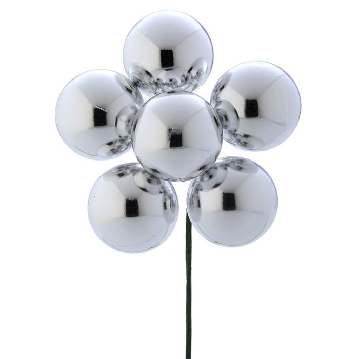 Ornamental Balls, Shiny Stemball Bunch Silver