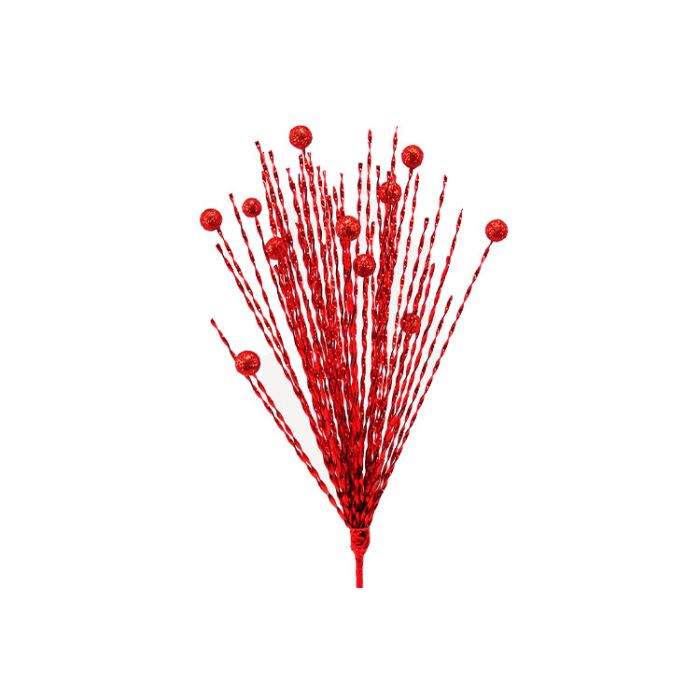 Plus One Imports Curly Tinsel Bead, Spray 18" - Red