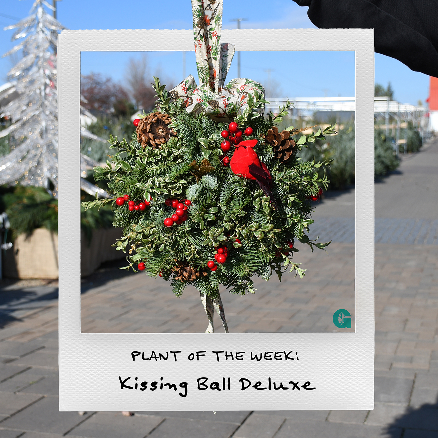 The perfect addition to your holiday entryway! These handcrafted kissing balls are large (think volleyball-sized) & are a great way to add a twinkle of charm to that empty corner. Built with mixed fresh greens and decorated with fancy ribbon, berries & holiday pics...These kissing balls make great gifts for that special someone.