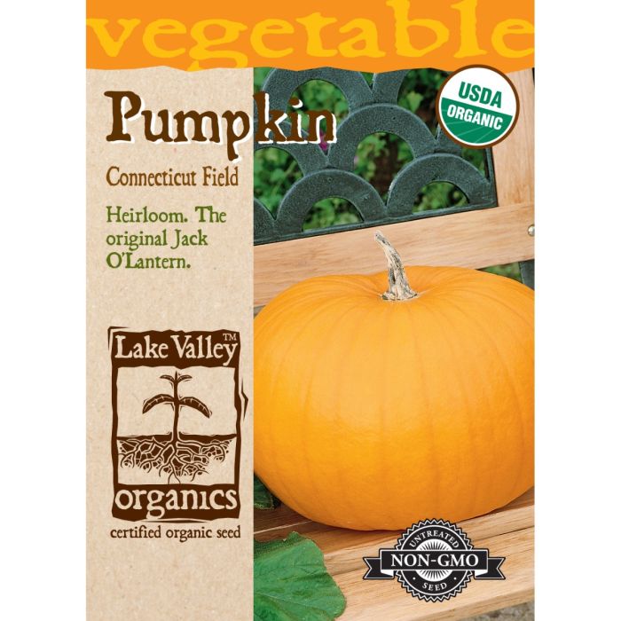 Connecticut Field is the traditional American pumpkin, with a history that goes back several hundred years. Deep orange pumpkins grow to 15-25 lbs. and are perfect for pumpkin pie or carving.