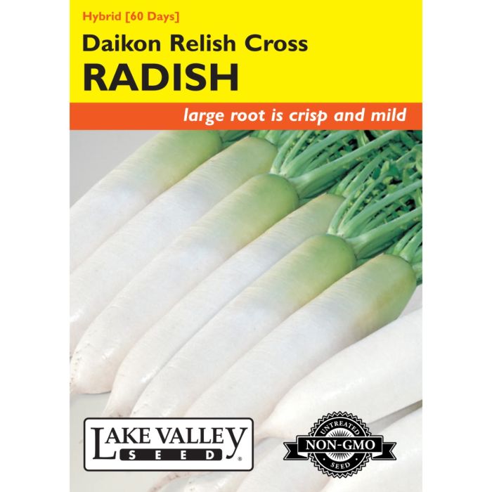 Sweet, mild and versatile, this white daikon radish root grows up to 15″ long. Its crisp texture and slightly spicy flavor make it a good choice for pickling. Use both cooked and raw.
