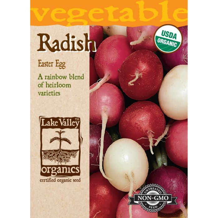 Easter Egg is a delightful mixture of white, red and purple radishes. This quality mix is one of our favorites because the radishes remain crispy and mild flavored over a long harvest period.