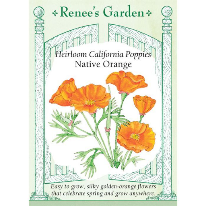 California poppies' fluted form and exuberant golden-orange color truly celebrate spring. A perfect choice for hot and dry areas, they'll grow easily without fuss all over the country. The silky, vivid flowers shine above mounds of feathery gray-green foliage for weeks, covering the ground with a cloak of bright flowers. Carefree and cheerful, these native orange poppies are perfect to cover a neglected area or hard to cultivate slope or plant in the garden for a memorable display of glowing color.