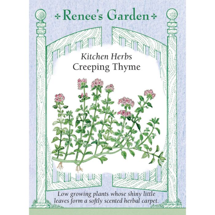 Given good drainage and a sunny location, easy-growing creeping thyme plants are reliable and productive garden perennials. Be sure to thin or transplant seedlings to proper spacing and keep weed free; plants will fill out and spread once well established. Little lavender-rose flowers bloom atop the shiny dense leaves at midsummer.