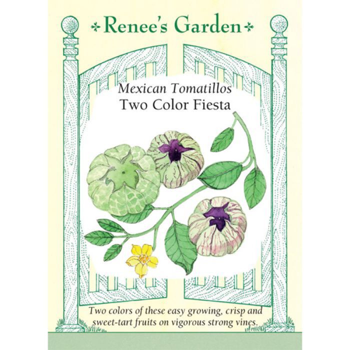Easy to grow, tomatillos look like large green cherry tomatoes, each wrapped in a thin papery husk like a candy. Our heirloom purple-skinned variety is prolific with small, sweet/tangy fruits that are great grilled or in purple salsa. Green-skinned Toma Verde is imported from Mexico, with crispy fruits on strong vines. Enjoy both sweet-tart flavors for summer salsas, rich-tasting stews and savory sauces.