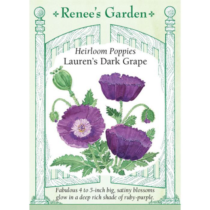 Absolutely stunning 4 to 5 inch chalice-shaped flowers with satiny petals that glow in the most delicious shade of deep ruby-purple. These outstanding, heirloom poppies grow 3 to 5 feet tall, depending on how rich your soil is. With their big, lettuce-like, blue-gray leaves and port wine colored flowers, Lauren’s Grape is a highlight of the spring garden. These beautiful flowers easily self sow to shine again every season.