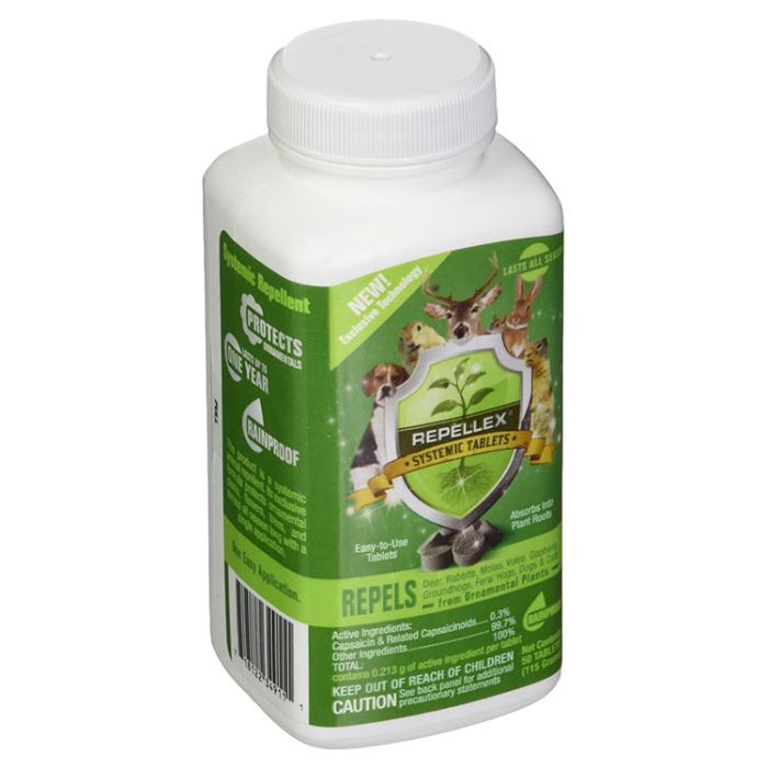 Repellex® Systemic Tablets is a revolutionary new product that has quickly become our #1 seller. This exclusive patented formula changes the way we protect our plans from browsing animals. It delivers a hot pepper concentrate through plant roots at the molecular level, making the plants inedible to animals.