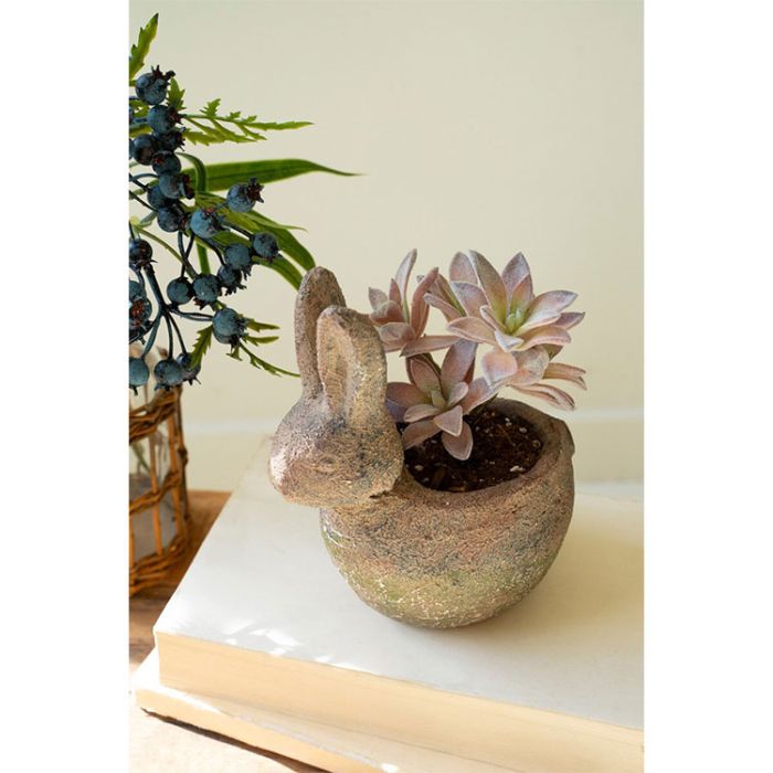 Hop into spring with this rustic terracotta rabbit planter. Gift a teacher or auntie a springtime treat. This charming planter holds trinkets or botanicals.