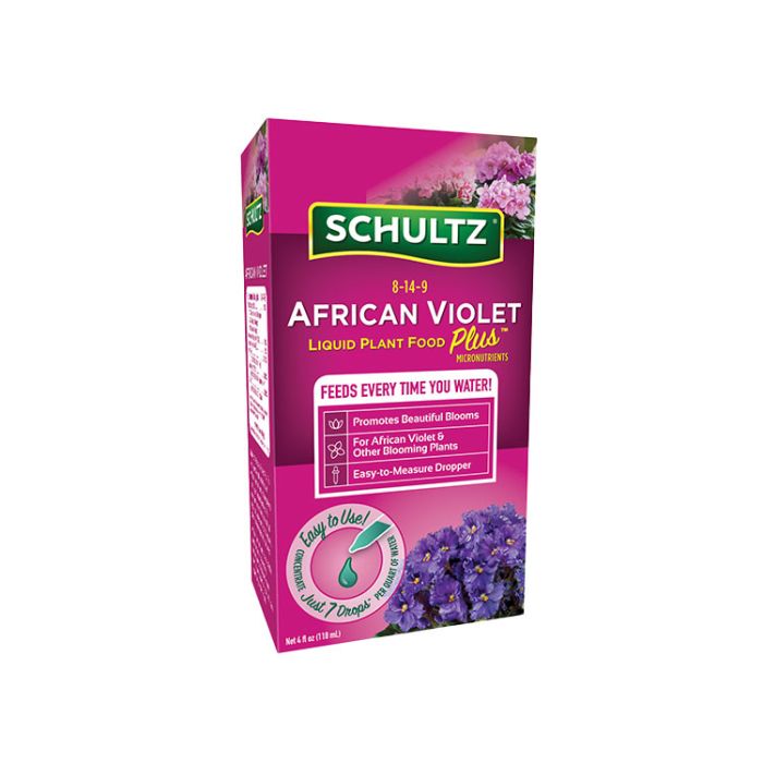 4 oz. Schultz African Violet Plus Liquid Plant Food 8-14-9 Feeds Every Time You Water! Specially formulated for African violets and other blooming plants. Easy to use and contains the basic micronutrients your flowers need.