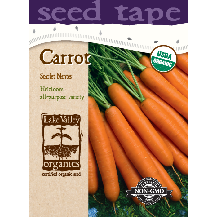 Daucus, Carrot Nantes 'Scarlet' Organic Heirloom Seed Tape 6.6 ft