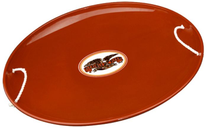 Get ready for hours of fun on the snowy hill with this steel saucer by Flexible Flyer. It has an extremely slick bottom that will get you cruising down in a hurry. It is made of durable steel with 2 nylon rope handles to hold on tightly for safety.