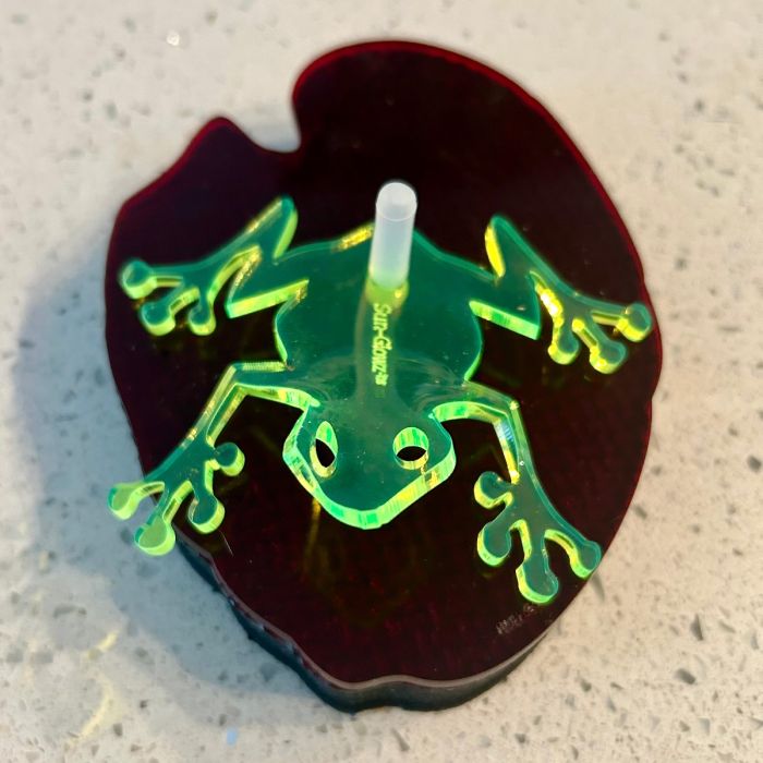 Bring a splash of personality to your water features with this whimsical floating base, designed to drift effortlessly across ponds, or birdbaths . The sturdy, buoyant platform supports a small fluorescent edge glowing green frog perched proudly on top—an eye‑catching accent that adds charm day or night.