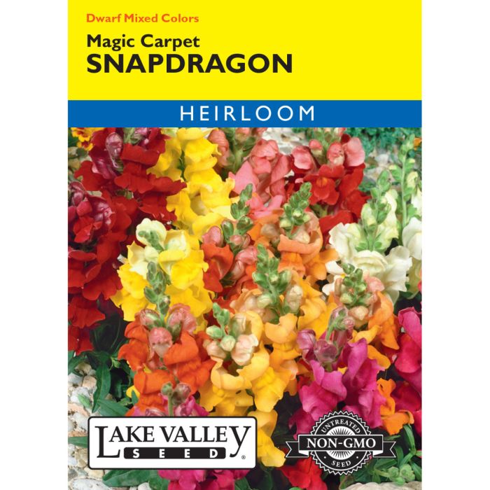 Magic Carpet is a dwarf snapdragon with a compact habit and abundant spikes of cheery blossoms. Thrives in cooler temperatures, easy to grow, and an excellent choice for low- growing borders.