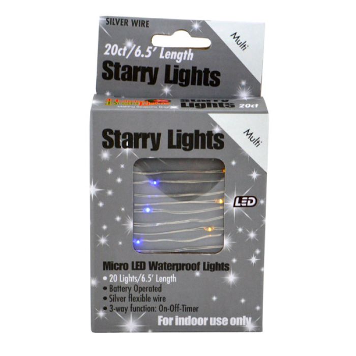 Holiday Bright Lights Starry Micro LED Multi-Color 20 Light Silver Wire