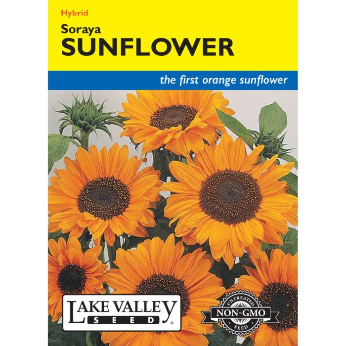 Soraya is considered to be the first true orange sunflower, with sunny petals surrounding a deep chocolate center. Branching plants produce an abundance of long stemmed, long lasting flowers, ideal for bouquets. An All-America Selections winner in 2000.