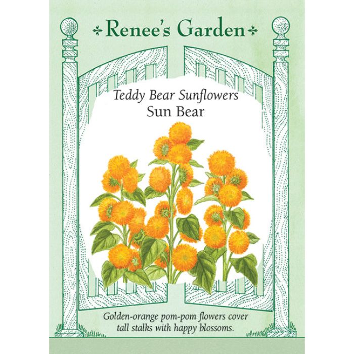 This stunning sunflower bursts into bloom with a profusion of super double, 5-inch golden-orange flowers that have a plush texture like a favorite teddy bear. The straight and tall 5-7 foot stalks are covered with big, bright blooms from top to bottom. Sun Bear sunflowers are exceptionally long blooming and its sturdy flowers hold their color. A fun and cheerful addition to any garden, it's also great for cutting and highly sought after by birds, bees and pollinators.