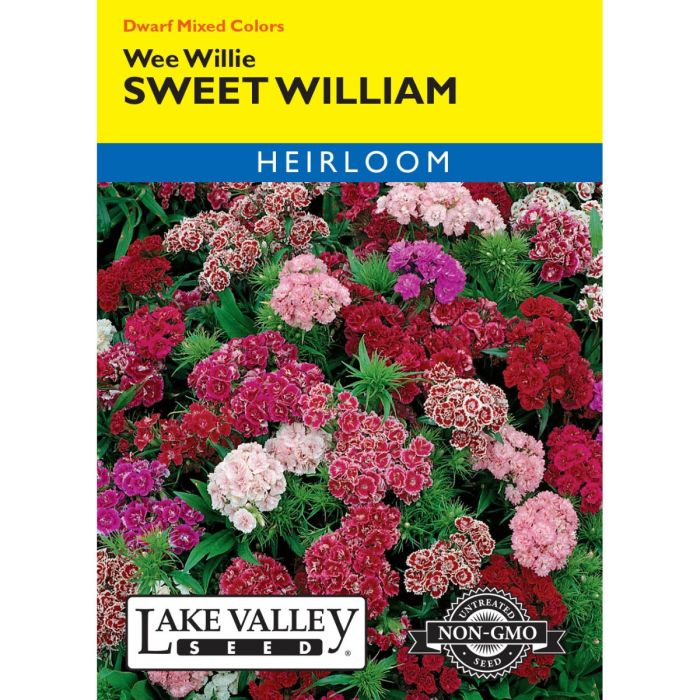 Wee Willie is a dwarf annual version of the common Sweet William. Its compact form and free blooming habit makes it a perfect filler for instant color in the garden. Blooms in 6-8 weeks from seed. Very easy to grow.
