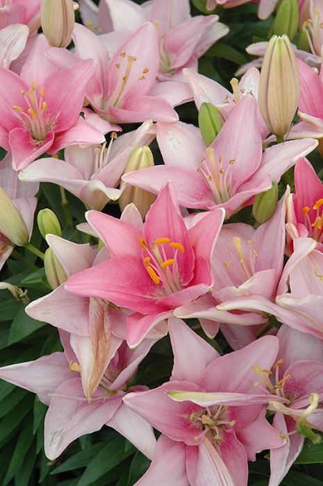 This variety is a compact lily that bears well formed, upward facing, deep pink blooms; perfect for containers or massing along borders