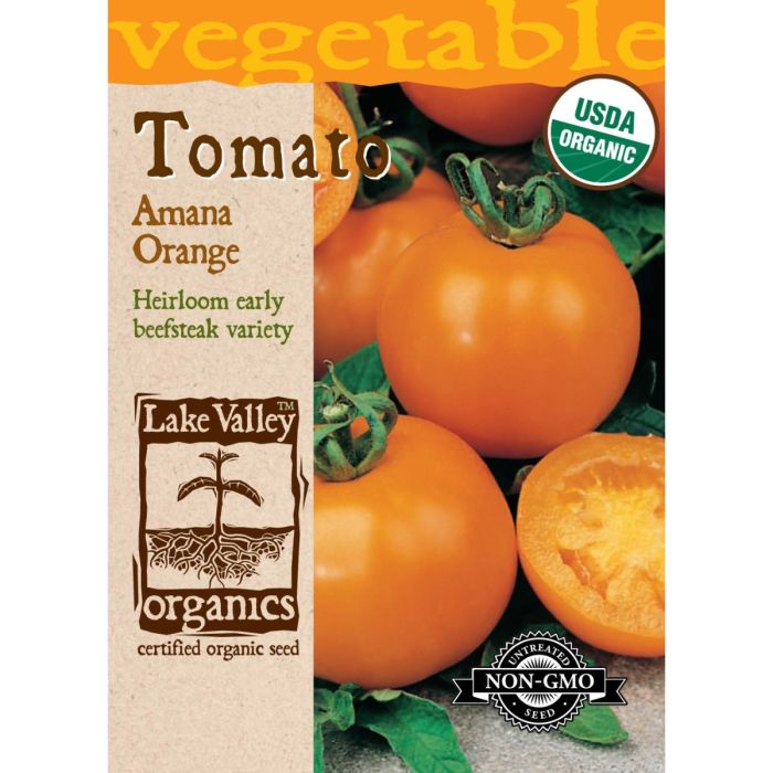 Amana Orange is one of the most flavorful of the early producing beefsteak varieties. The vigorous plant produces meaty, deep orange fruits that can weigh up to one lb.