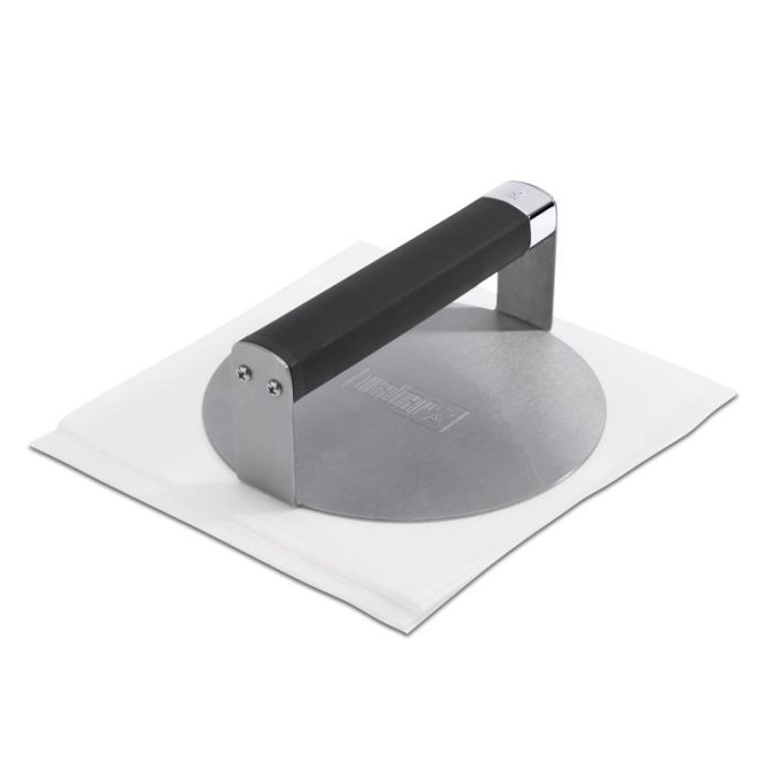 Smash perfectly thin, crispy burgers on your griddle with ease with the Griddle Smashed Burger Press. Sturdy stainless-steel construction and a non-slip grip help you effortlessly smash mouthwatering burgers with edge-to-edge crusts and sealed-in flavor. When you're done cooking, place it in the dishwasher for easy cleanup. Specially designed for creating griddled smashed burgers with edge-to-edge crusts and sealed in flavor. Smooth surface for a better release from your burgers and easier cleaning. Non-slip grip makes it easy to move from burger to burger. Durable stainless-steel construction. Dishwasher safe.